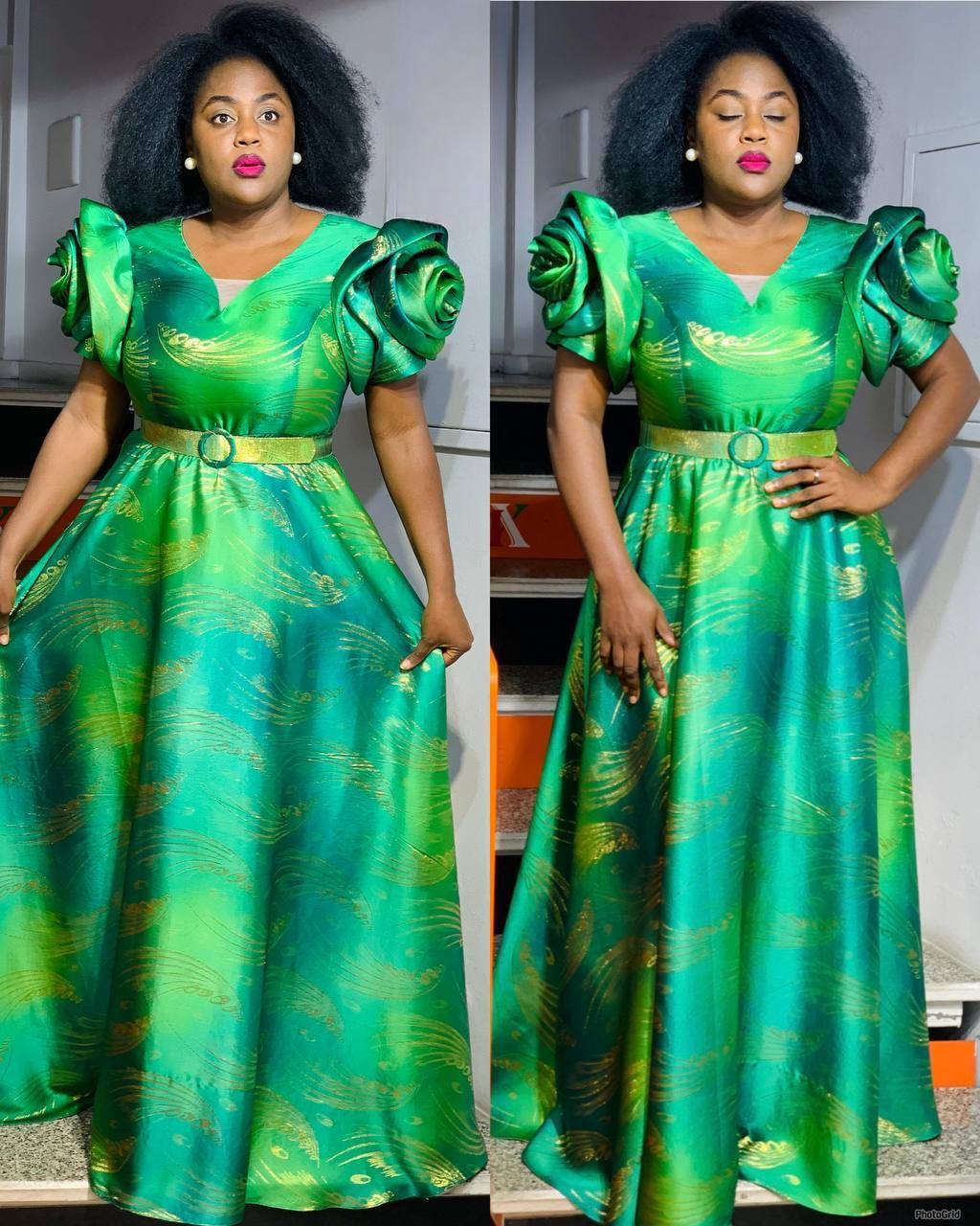 Emerald Green Structured Maxi Dress with Sculpted Rose Sleeves