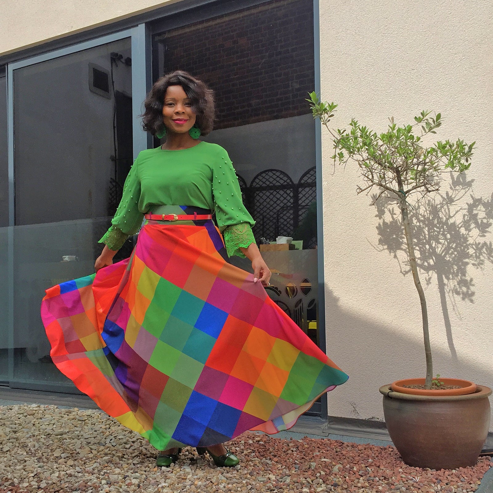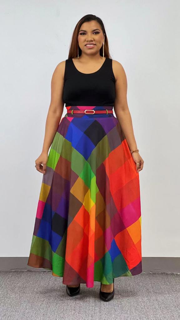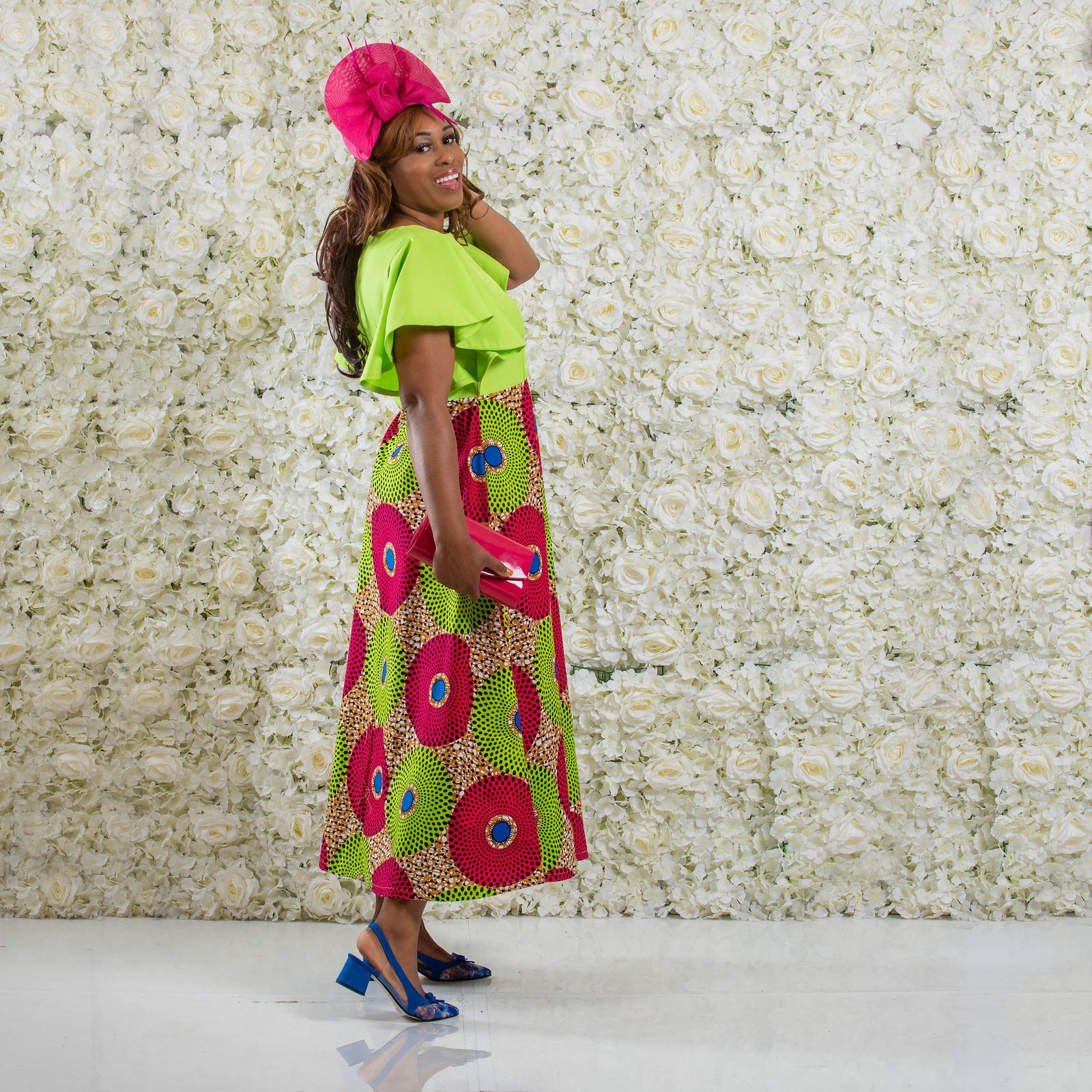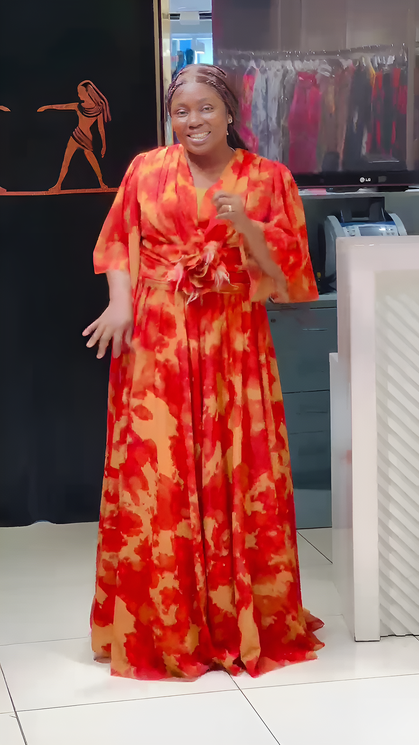 Mutli color Pleated Gown w/Draped Sleeves & Floral Waist Detail
