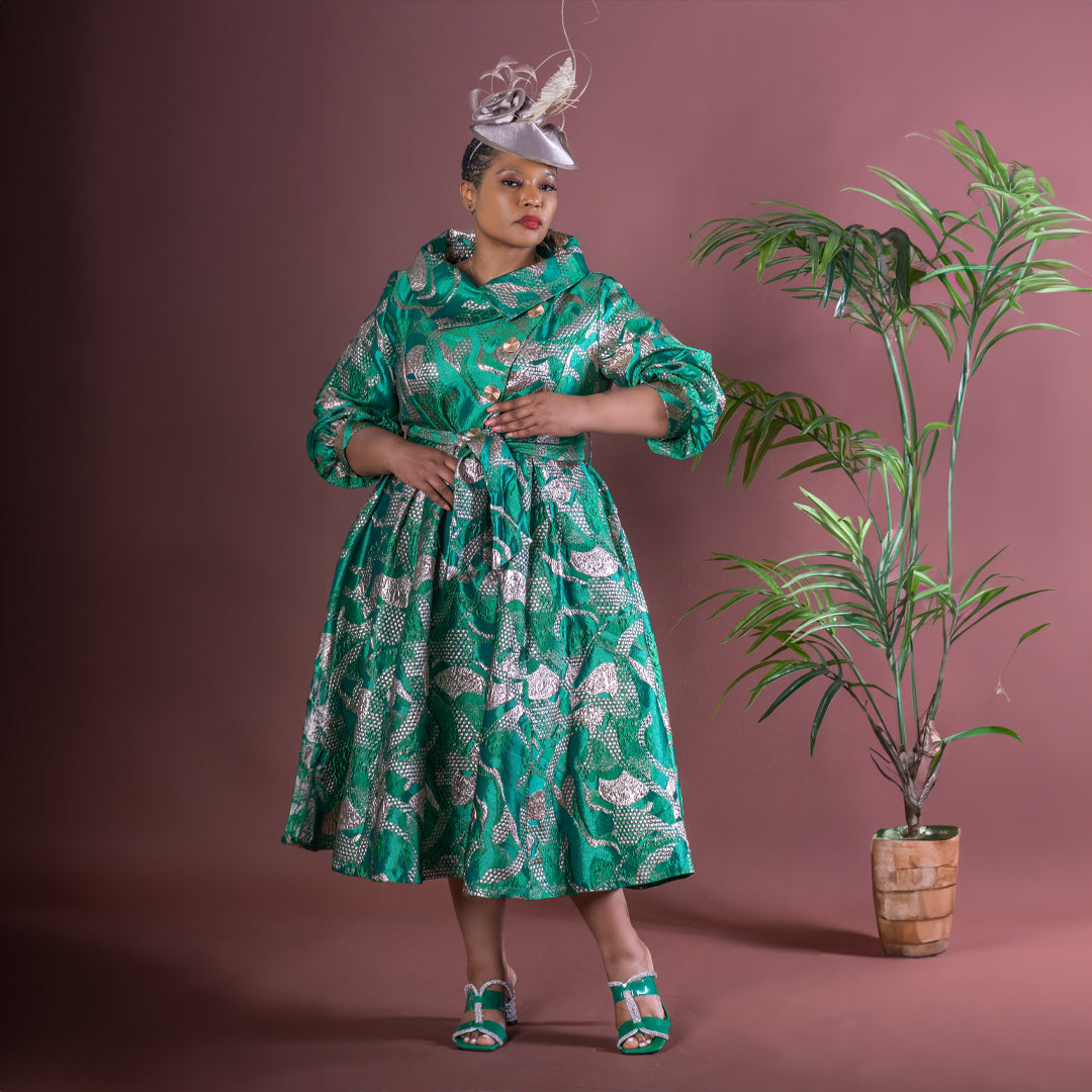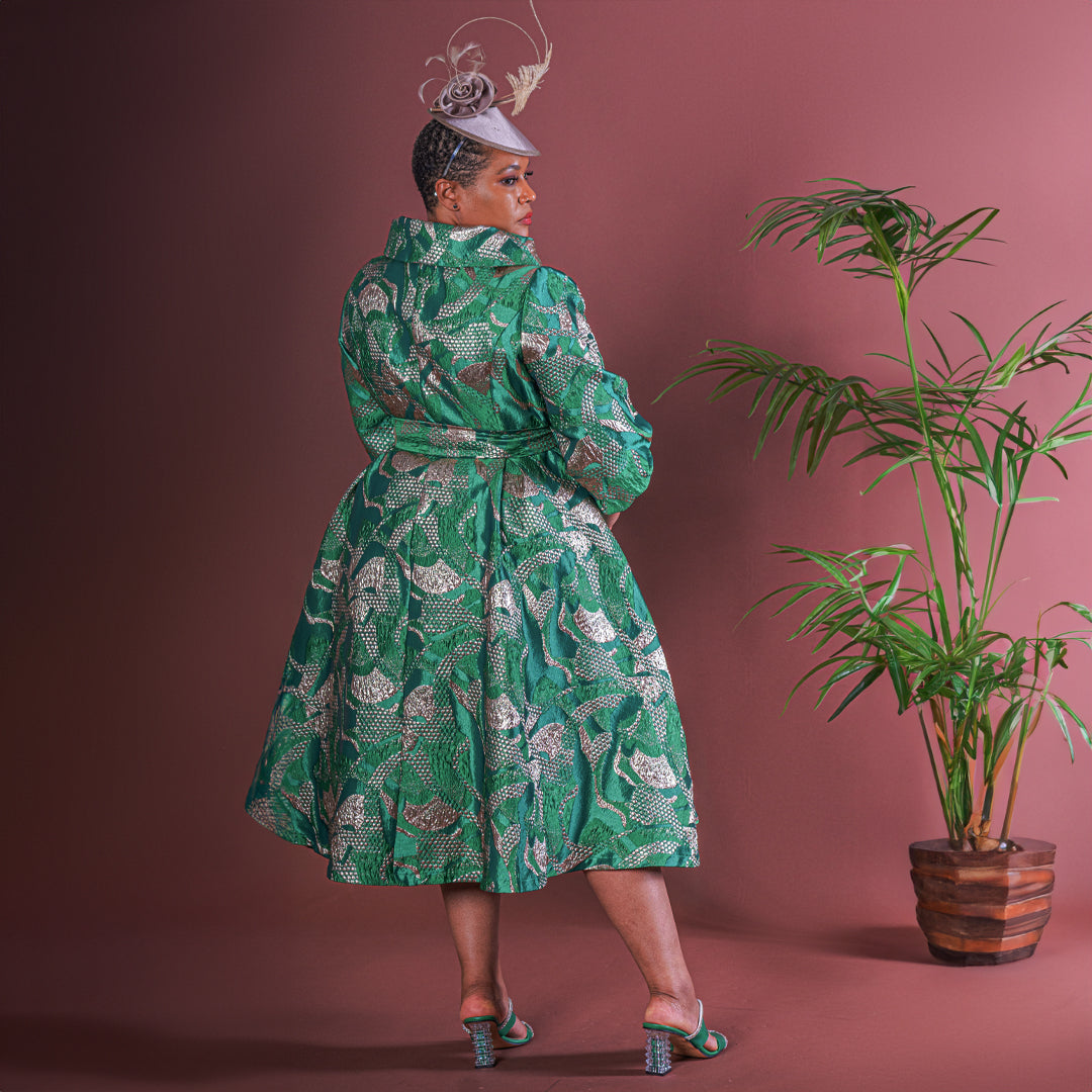 Emerald Green & Gold Floral Box Pleat Midi Dress with Jacket