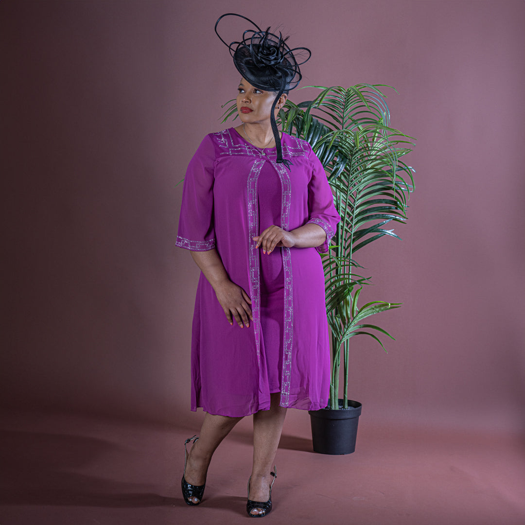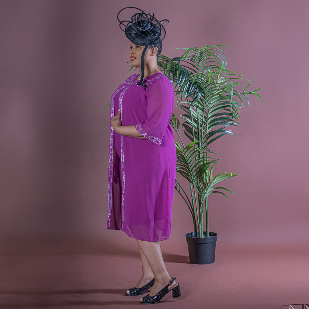 Fuchsia Pink Chiffon Dress with Diamante Detail