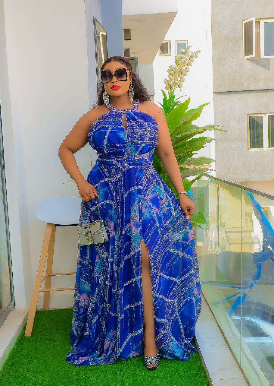 Blue Floral Halter Neck Pleated Maxi Dress w/Embellished Details