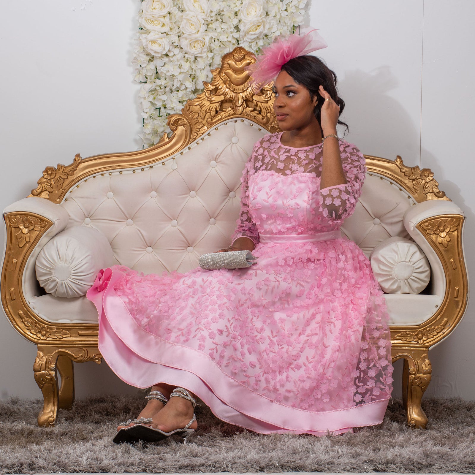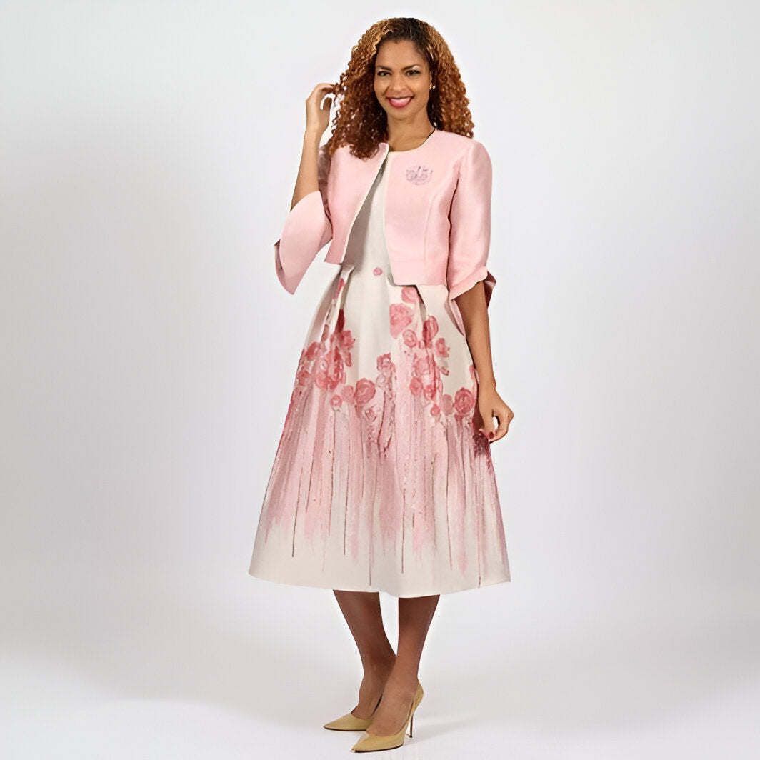 Blush Pink & Rose Floral Box Pleat Midi Dress with Jacket