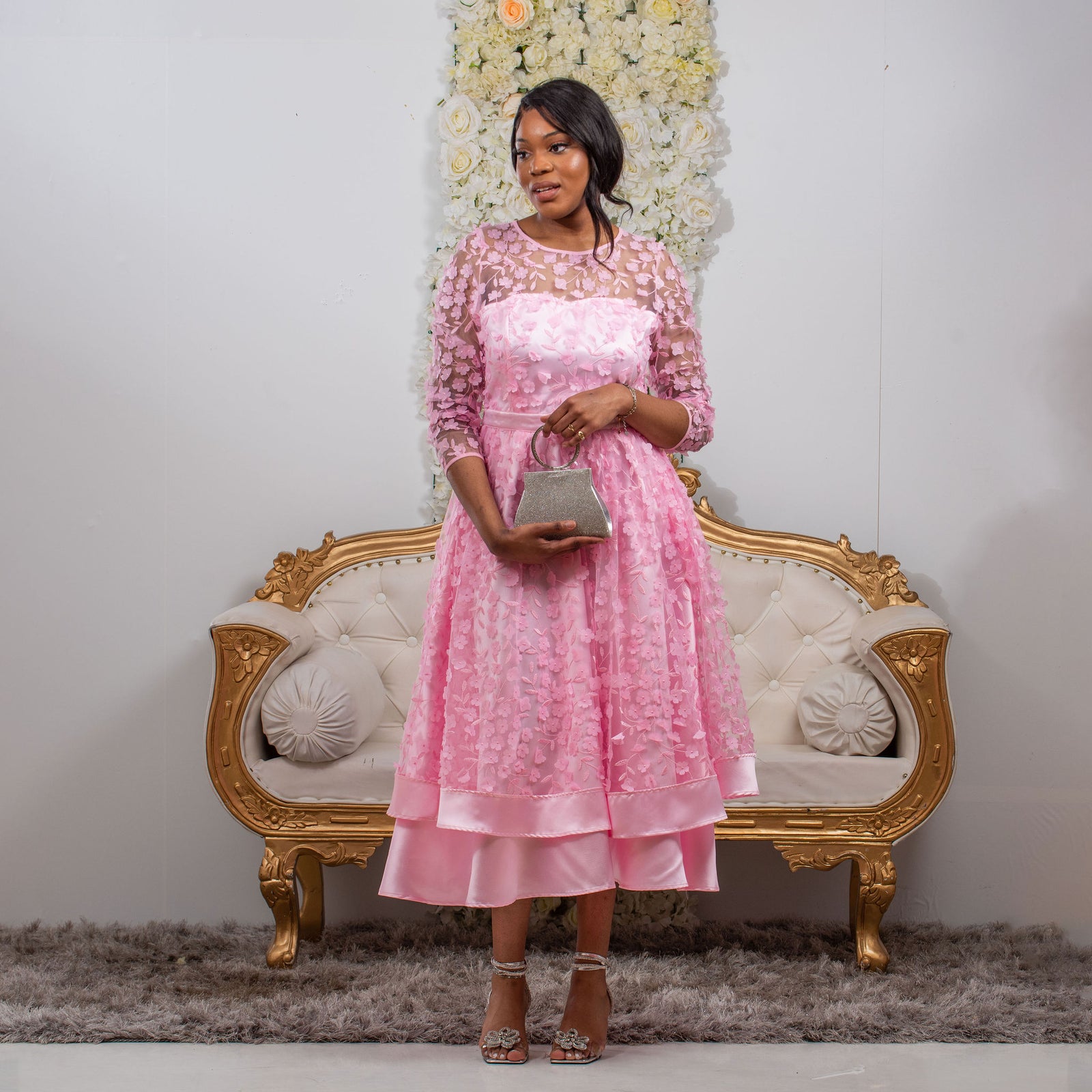 Elegant Pink Long Sleeve Tiered Dress for Weddings